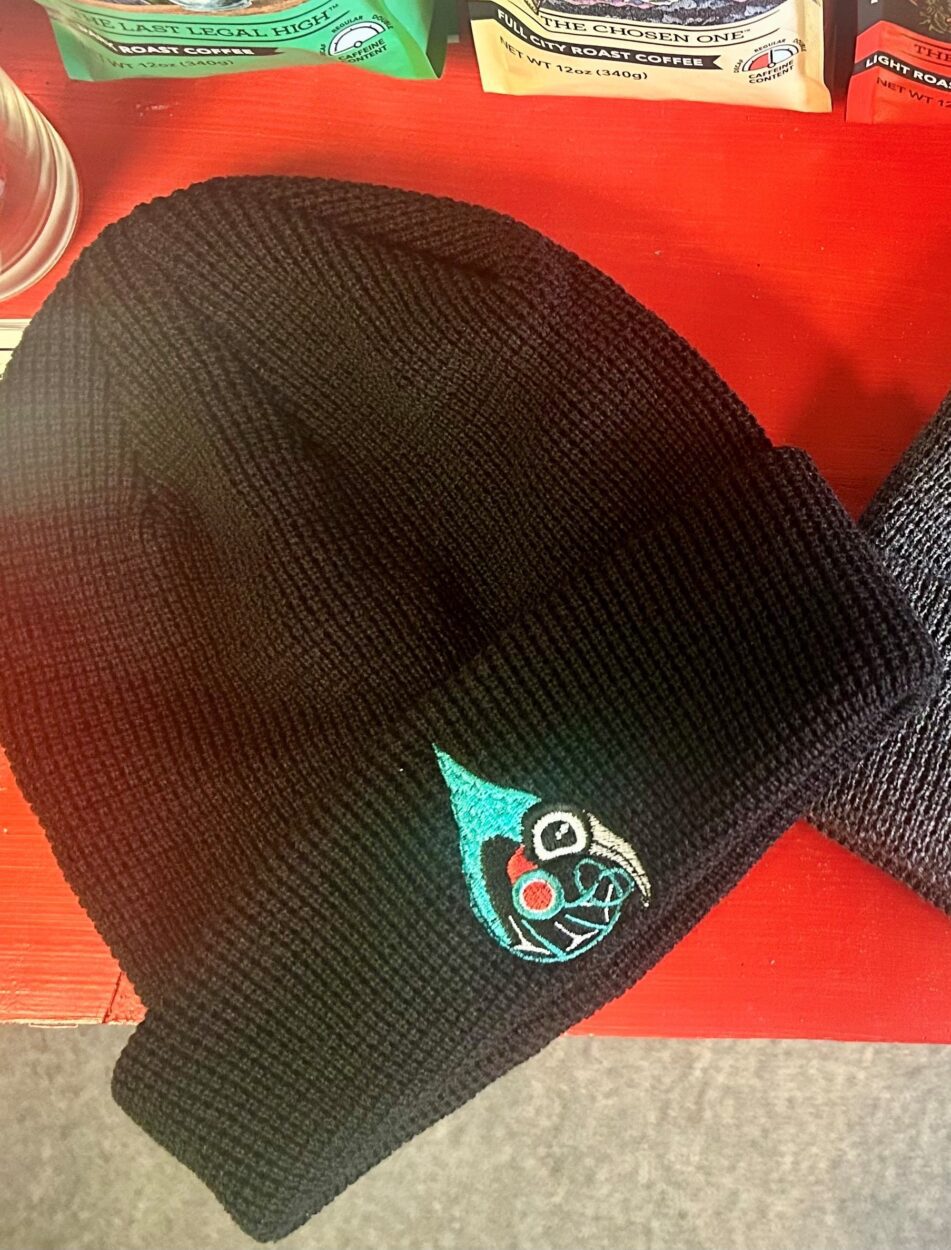This black waffle knit beanie will keep your head warm all winter long while you sport Savannah LeCornu’s Rainbird design embroidered locally by North Creative! Limited supply so get yours today!