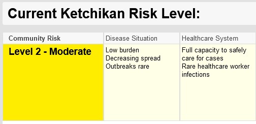 Ketchikan’s pandemic risk ticked up from “low” to “moderate” Friday after state authorities classified three recent COVID-19 infections as cases of “community transmission.”